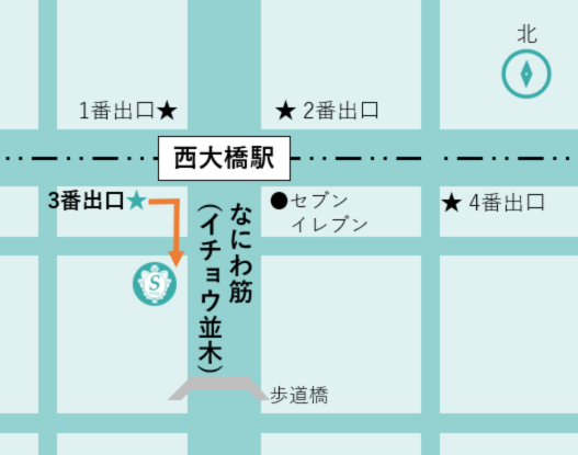※改札からは約15分かかります。西大橋駅の利用をおすすめします。