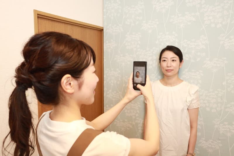 施術後のお顔との変化を比べるためにビフォー写真を撮影します。
