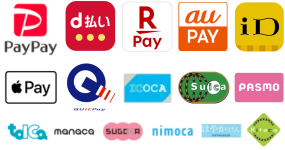 PayPay、d払い、楽天Pay、au PAY、iD、Apple Pay、QUICPay、ICOCA、Suica、PASMO、TOICA、manaca、SUGOCA、nimoca、はやかけん、Kitaca