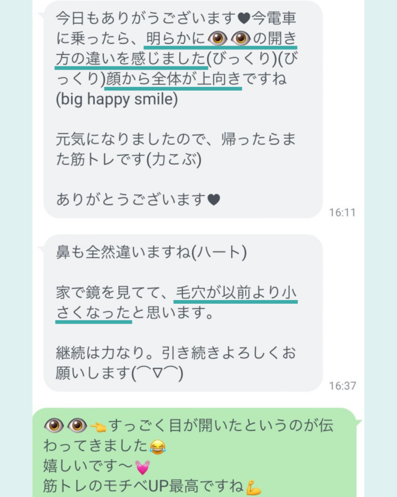 直後から変化を感じていただいていましたが、帰りの電車から「目の開きが明らかに違う👁👁」とLINEが😆
