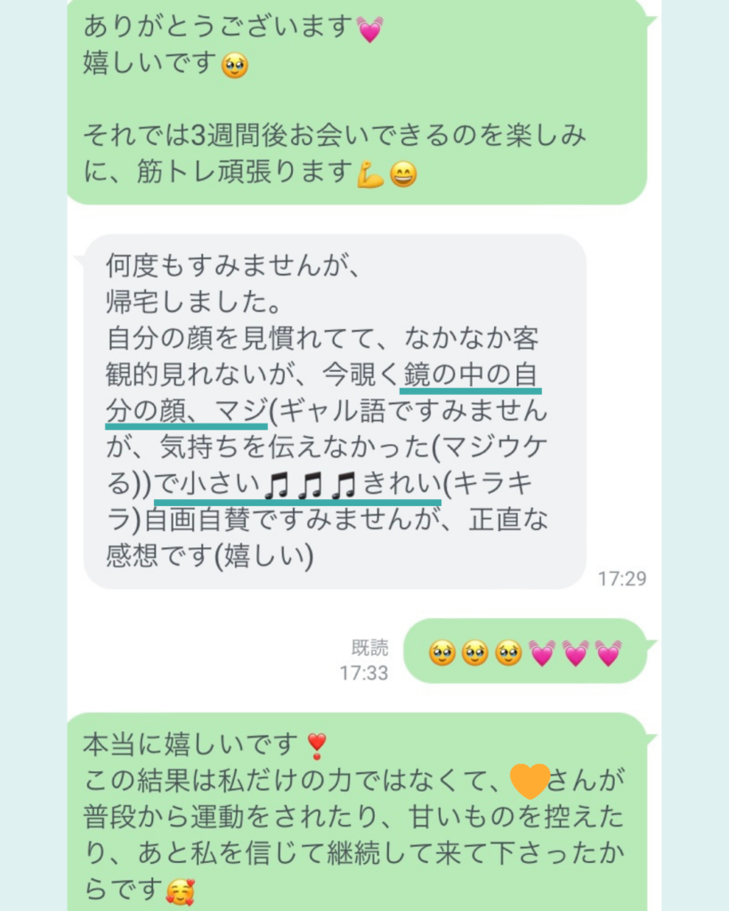 そして家に帰られてからも「鏡の中の自分の顔マジで小さい♫♫キレイ✨」と嬉しい感想をいただきました💓